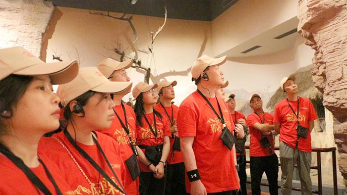 首先,大家來到本次活動的始發(fā)站——紅旗渠紀(jì)念館,實地參觀了當(dāng)年修渠時留下的珍貴照片。在講解員的講解下,通過千年旱魔、紅旗yin領(lǐng)、太行豐碑、山河巨變、精神永恒五個展廳回顧了當(dāng)年的修渠歷程。一幅幅生動的歷史照片記錄了林州百姓艱苦奮斗的堅毅精神;一件件珍貴的修渠文物無聲地表達了林州百姓人定勝天的頑強意志,展現(xiàn)了黨帶領(lǐng)林州人民十年奮戰(zhàn)、改造河山的震撼場景,也唱響了紅旗渠的zui強音。