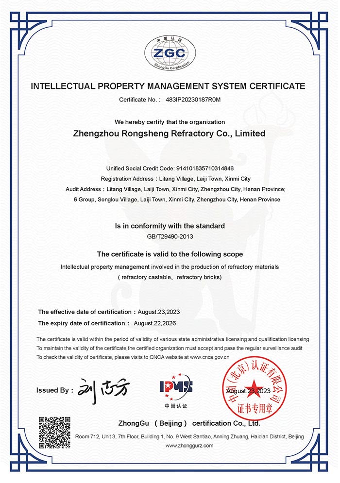 近日,鄭州榮盛窯爐耐火材料有限公司(以下簡稱「榮盛耐材」)順利通過知識產(chǎn)權(quán)貫標(biāo),并獲得了《知識產(chǎn)權(quán)管理》中英文雙語。該項(xiàng)的順利通過,標(biāo)志著榮盛耐材構(gòu)建了一套規(guī)范化、系統(tǒng)化、程序化、精細(xì)化的知識產(chǎn)權(quán)管理。