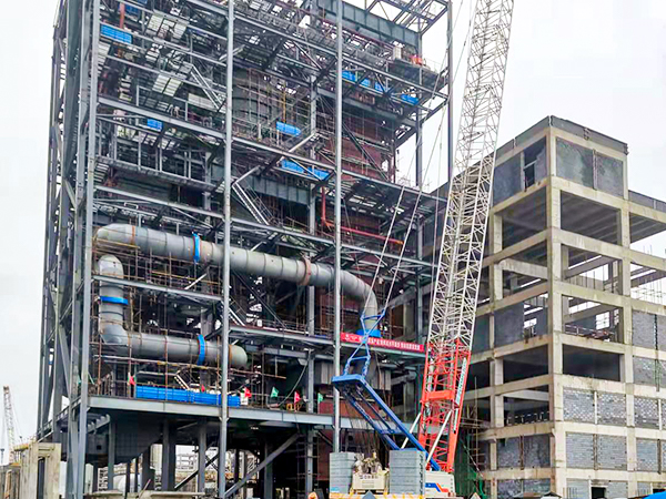 循環(huán)流化床鍋爐所燃燒物料的循環(huán)燃燒路徑:煤粉(一般用粒度0~10mm)和石灰石粉經(jīng)送料器送入流態(tài)化床燃燒室(密相區(qū)),燃料在此區(qū)沸騰燃燒。煙氣上升,經(jīng)稀相區(qū)至分離器入口進入旋風分離器,粗顆粒下沉經(jīng)回料閥返回燃燒室再次燃燒。煙氣挾帶飛灰上升經(jīng)過對流煙道進入外置換熱器。耐火材料主要襯砌在燃燒室、頂棚、分離器入口、高溫旋風分離器及回料閥等處。